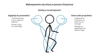 Ilustracja „Wykazywanie się wiarą w Jezusa Chrystusa” może pomóc uczniom zrozumieć definicję wiary w Jezusa Chrystusa, którą podał Starszy Bednar. Narysuj ją na tablicy lub umieść na widoku, aby uczniowie mogli się do niej odnosić w trakcie lekcji.