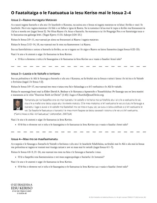 O tala i le Iosua 2–4 e faapupula ai se tasi pe sili atu o nei vaega taitasi o le faatinoina o le faatuatua ia Iesu Keriso.