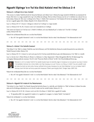 Hili e fononga ʻa e kakai ʻIsilelí ʻi he toafá, naʻe fekauʻi ʻe he ʻEikí ʻa Sosiua ke tataki kinautolu ki he fonua ʻo e talaʻofá. Naʻe fiemaʻu ke nau fakaʻaongaʻi ʻenau tui kia Sīsū Kalaisí ʻi heʻenau aʻu ki he fonua ʻo e talaʻofá. Naʻe fakahaaʻi ʻe he fānau ʻa ʻIsilelí mo ha fefine ko Lēhapi ʻa ʻenau tui kia Sīsū Kalaisí. ʻE lava ke tokoni ʻa e lēsoni ko ʻení ke mahino ki he kau akó ʻa e founga te nau lava ai ʻo fakaʻaongaʻi ʻenau tui kia Sīsū Kalaisí.