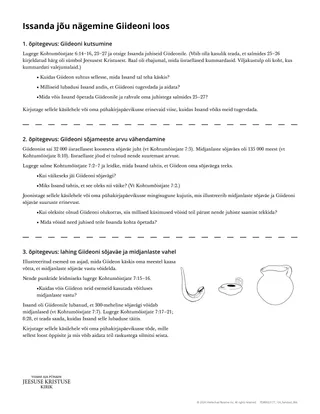 Kui õpilased on töö jaotmaterjaliga lõpetanud, paluge neil jagada kokkuvõtet sellest, mida nad Giideoni loost õppisid.