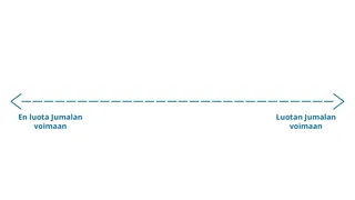 Mieti, kuinka todennäköisesti turvaat Jumalan voimaan eri tilanteissa. Päätä kunkin alla mainitun tilanteen kohdalla, mihin kohtaan sijoittaisit itsesi seuraavassa kaaviossa.