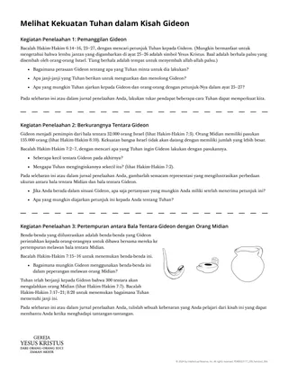 Untuk membantu siswa memahami bagaimana Tuhan memberkati Gideon dan pasukannya karena bersandar kepada-Nya untuk kekuatan mereka, pertimbangkan untuk menggunakan selebaran “Melihat Kekuatan Tuhan dalam Kisah Gideon.” Perkenankan setiap siswa menjadi familier dengan isi dari setiap bagian selebaran. Ada beberapa cara Anda dapat melakukan ini.