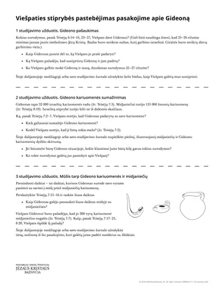 Kai mokiniai baigs dirbti su dalijamąja medžiaga, paprašykite jų apibendrinti, ką sužinojo iš pasakojimo apie Gedeoną.
