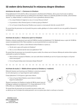 După ce cursanții au parcurs foaia de prezentare, invitați-i să împărtășească un rezumat cu ceea ce au învățat din povestea lui Ghedeon.