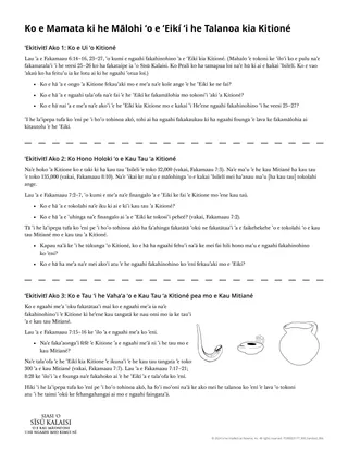 Ke tokoni ke ʻilo ʻe he kau akó ʻa e founga naʻe tāpuakiʻi ai ʻe he ʻEikí ʻa Kitione mo ʻene kau taú ʻi heʻenau falala kiate Ia ke maʻu honau mālohí, fakakaukau ke fakaʻaongaʻi ʻa e laʻipepa tufa “Vakai ki he Mālohi ʻo e ʻEikí ʻi he Talanoa ʻo Kitioné.” Tuku ki he tokotaha ako takitaha ke maheni mo e kakano ʻo e konga takitaha ʻo e laʻipepa tufá. ʻOku lahi ha ngaahi founga ʻe lava ke ke fakahoko ai ʻeni.