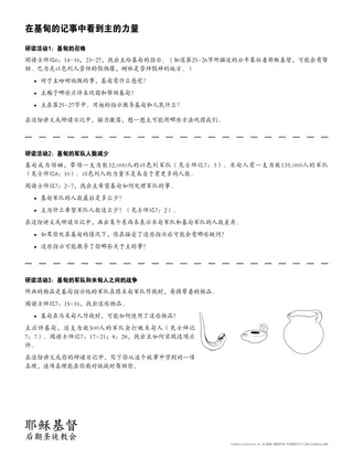 为了帮助学生了解,主如何因基甸和他的军队仰赖祂以获得力量而祝福他们,不妨使用讲义「在基甸的记事中看到主的力量」。让每个学生熟悉讲义各部分的内容。有几种方法可以做到这一点。