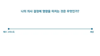 무엇이 삶에서 내리는 결정에 영향을 주는지 생각해 본다. 학습 일지에 다음 척도를 그린다. 자신이 척도 중에서 어디에 위치하는지를 보여 주는, 작은 사람 모양을 그린다.