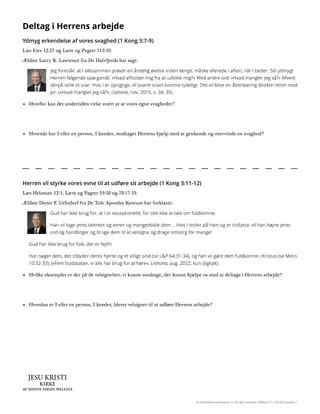 Hjælp eventuelt eleverne til at få en dybere forståelse af denne sandhed. En måde at gøre det på kunne være at bruge uddelingsarket »Deltag i Herrens værk«. Du kan klippe uddelingsarket midt over og bede eleverne om at vælge det afsnit, der fokuserer på den del af sandheden, de gerne vil lære mere om. Eleverne kan arbejde individuelt eller sammen med to eller tre andre, der valgte det samme afsnit.