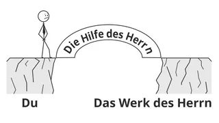 An dieser Stelle könnten Sie eine Brücke zwischen den beiden Seiten des Bildes an die Tafel zeichnen und darüber Hilfe vom Herrn schreiben. Bitten Sie die Schüler, auch in ihr Studientagebuch eine solche Brücke zu zeichnen.