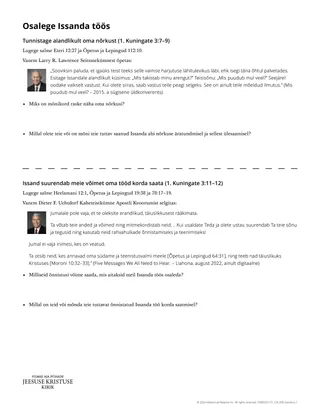 Võiksite aidata õpilastel sellest tõest paremini aru saada. Üks võimalus selleks oleks kasutada käsilehte „Osalege Issanda töös”. Võiksite lõigata käsilehe pooleks ja paluda õpilastel valida osa, mis keskendub sellele osale tõest, mille kohta nad soovivad rohkem teada saada. Õpilased võivad töötada individuaalselt või koos kahe või kolme õpilasega, kes valisid sama osa.