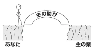 ホワイトボードの両方の絵の間に橋を描き,そこに「主の助け」と書くとよいでしょう。生徒にも,似たようなものを学習帳に描いてもらいましょう。