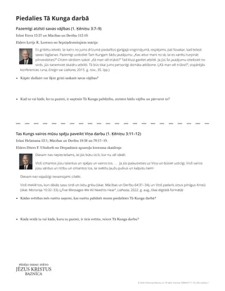 Padomā par aicinājumiem, ko Tas Kungs tev ir devis, lai tu varētu piedalīties Viņa darbā.