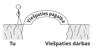 Galite lentoje nupiešti tiltą tarp abiejų piešinio pusių ir virš jo užrašyti antraštę Viešpaties pagalba. Paprašykite mokinių nupiešti kažką panašaus savo studijavimo žurnale.