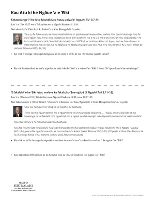 ʻI hoʻo ako he ʻaho ní, fakaafeʻi ʻa e Laumālie Māʻoniʻoní ke tokoni atu ke mahino kiate koe ʻa e founga ʻe tokoniʻi ai koe ʻe he ʻEikí ke fakahoko ʻEne ngāué.