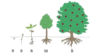 សូមពិចារណាដាក់បង្ហាញរូបភាពខាងលើ ឬអ្វីដែលស្រដៀងគ្នា ដែលបង្ហាញពីការលូតលាស់នៃគ្រាប់ពូជទៅជារុក្ខជាតិ ឬដើមឈើនៅក្នុងមេរៀនទាំងមូល ។ ជាមួយនឹងសកម្មភាពនីមួយៗ សិស្សនឹងយោងទៅរូបភាពនេះ កំឡុងពេលគិតពិចារណា ឬឆ្លើយសំណួរទាំងឡាយខាងក្រោមនេះ ។