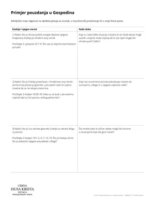 Razmotrite upotrijebiti uručak »Primjer pouzdanja u Gospodina« kako biste pomogli polaznicima razumjeti načelo koje su ranije prepoznali i povezati Ezekiju s njihovim životima.