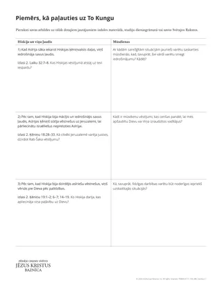 Jūs varētu izmantot izdales materiālu „Paļaušanās uz To Kungu”, lai palīdzētu audzēkņiem izprast iepriekš minēto principu un attiecināt Hiskijas pieredzi uz savu dzīvi.