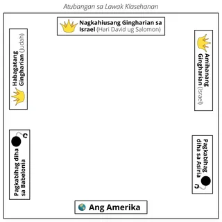 Sa dili pa ang klase, tingali gusto ninyong butangan og lahilahi nga label ang mga dapit sa lawak klasehanan sama sa Amihanang Gingharian (Israel), Habagatang Gingharian (Juda), Asiria, ang Amerika, ug Babylonia/Persia.