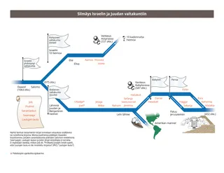 Sen sijaan että pyydät oppilaita kiertelemään luokkahuoneessa, voisit laittaa näkyville kaavion ”Silmäys Israelin ja Juudan valtakuntiin”. Oppilaat voisivat lukea samat jakeet ja keskustella samoista kysymyksistä kuin oppiaiheessa, mutta edetä kaavion mukaan.