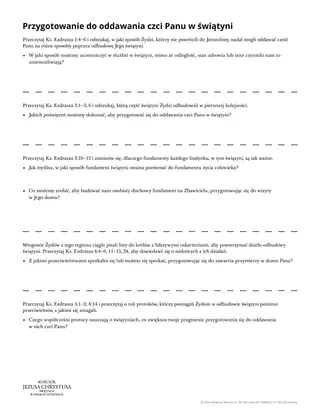 Poniższa ulotka może sprawić, że uczniowie odnajdą głębsze znaczenie Księgi Ezdrasza odnoszące się do ich życia poprzez porównanie wysiłków Żydów przy budowie świątyni do naszych przygotowań do oddawania czci Panu w Jego świątyniach.