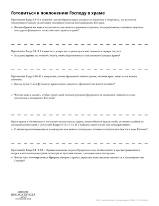 Прилагаемый раздаточный материал может помочь студентам найти более актуальное применение Книги Ездры в их жизни через сравнение усилий, приложенных иудеями при строительстве храма, с нашей подготовкой к поклонению Господу в Его храмах.