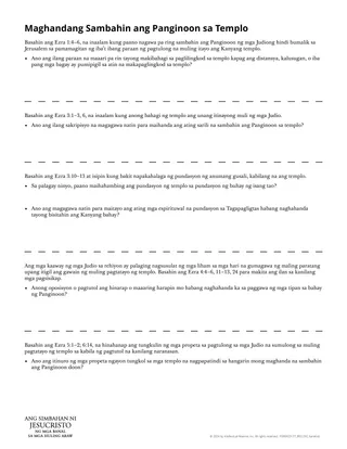 Makatutulong ang kalakip na handout sa mga estudyante na makakita ng malaking kaugnayan sa aklat ni Ezra sa kanilang buhay sa pamamagitan ng paghahambing ng mga pagsisikap ng mga Judio na itayo ang templo sa ating mga paghahanda na sambahin ang Panginoon sa Kanyang mga templo.