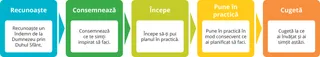 Gândește-te la ce te-ai simțit îndemnat de Duhul Sfânt să faci în ultimele câteva săptămâni. Este posibil să fi primit aceste îndemnuri în diferite împrejurări, inclusiv acasă, la biserică sau la seminar. Pentru fiecare îndemn pe care îl identifici, gândește-te unde te afli în diagrama de mai jos. Consemnează-ți gândurile în jurnalul pentru studiu despre care simți că vor fi următorii tăi pași de a urma îndemnurile pe care le-ai primit.