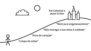 Você pode incluir no topo de seu monte um desenho simples de um templo e as palavras Pai Celestial e Jesus Cristo. Você pode desenhar um boneco no pé do monte para nos representar.