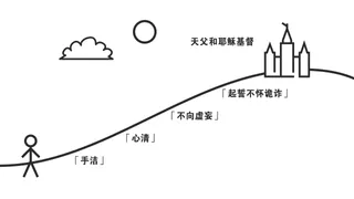 不妨在山顶上画一座圣殿的简图,并写下「天父和耶稣基督」。在山脚下画一个人物简图代表我们自己。