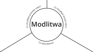 Poniższy schemat może skłonić uczniów do zastanowienia się nad tym, w jaki sposób mogą zastosować to, czego nauczyli się o modlitwie. Poproś uczniów, aby przerysowali go do swoich dzienników do studiowania. Następnie poproś ich, aby zapisali na nim odpowiedzi na pytania z każdej z sekcji.
