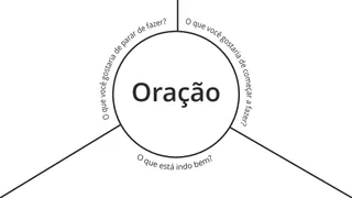 O diagrama abaixo pode ajudar os alunos a pensar em maneiras de aplicar o que aprenderam sobre a oração. Peça aos alunos que desenhem o quadro nos respectivos diários de estudo. Depois, peça a eles que escrevam respostas para as perguntas do gráfico em cada seção.