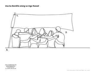Diha sa bandera, isulat ang pipila ka butang nga imong nahibaloan bahin kang Jesukristo ug sa Iyang gipahiuli nga Simbahan nga para nimo makadani sa uban sa pagpundok ngadto Kaniya ug sa pag-apil sa Iyang Simbahan. Pwede nimong iapil ang mga butang nga talagsaon sa Ang Simbahan ni Jesukristo sa mga Santos sa Ulahing mga Adlaw (sama sa Basahon ni Mormon, modernong mga propeta, ang pagkapari sa Dios, ug mga templo sa ulahing mga adlaw). Isulat kon sa unsang paagi kita napanalanginan sa Ginoo pinaagi niining mga butanga.