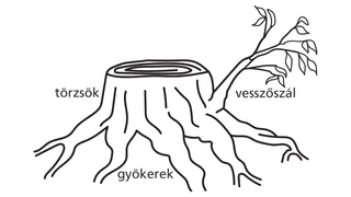 Olvasd el az Ésaiás 11:1-et, és címkézd fel a rajz részeit. (A törzsök az a törzs vagy fatönk, a vesszőszál pedig fordítható kis ágnak vagy hajtásnak is.)