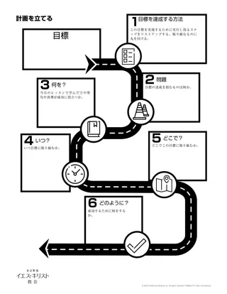生徒が生活の中で天の御父とイエス・キリストをより完全に第一にするための計画を立てられるように,「計画を立てる」という表題の配付資料を使うとよいでしょう。目標を達成するために何をするかを決める際に,聖霊から受ける印象に耳を傾けるよう生徒を励ましましょう。