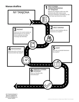 Mba hanampiana ny mpianatra hanao drafitra hametrahana bebe kokoa ny Ray any An-danitra sy i Jesoa Kristy ho lohalaharana eo amin’ny fiainan’izy ireo dia azonao ampiasaina ilay taratasy zaraina izay mitondra ny lohateny hoe “Manao drafitra”. Amporisiho izy ireo hihaino ireo fahatsapana avy amin’ny Fanahy Masina eo am-pamaritan’izy ireo ny zavatra tian’izy ireo hatao mba hanatratrarana ny tanjony.
