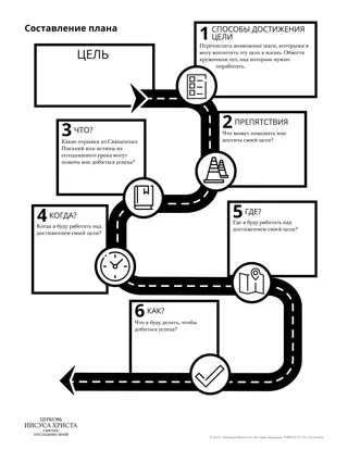 Чтобы помочь студентам составить план, позволяющий в более полной мере ставить Небесного Отца и Иисуса Христа на первое место в жизни, вы можете использовать раздаточный материал под названием «Составление плана». Предложите студентам прислушиваться к побуждениям Святого Духа, когда они задумаются над тем, что они хотели бы сделать для достижения своей цели.