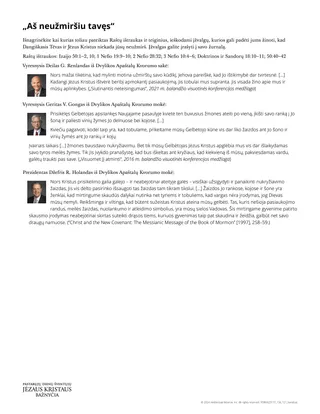 Galite panaudoti dalijamąją medžiagą „Aš neužmiršiu tavęs“, kad padėtumėte mokiniams geriau suvokti, jog Dangiškasis Tėvas ir Jėzus Kristus jų neužmirš. Kai kurias arba visas dalijamojoje medžiagoje pateiktas citatas ir Raštų nuorodas galite išdėlioti po visą klasę.