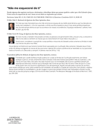 Você pode usar o material complementar “Não te esquecerei” para ajudar a aprofundar o entendimento dos alunos de que o Pai Celestial e Jesus Cristo não Se esquecerão deles. Você pode espalhar pela sala algumas ou todas as citações e referências das escrituras do material.