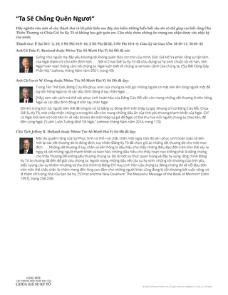 Cân nhắc sử dụng tài liệu phát tay “Ta Sẽ Chẳng Quên Ngươi” để giúp học viên gia tăng sự hiểu biết rằng Cha Thiên Thượng và Chúa Giê Su Ky Tô sẽ không bao giờ quên họ. Anh chị em có thể đặt xung quanh phòng một số hoặc tất cả các câu trích dẫn và các đoạn tham khảo thánh thư từ tài liệu phát tay.