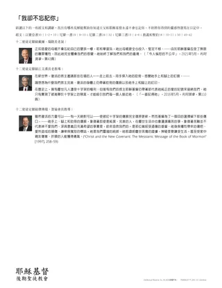 許多年後,回想當初那個小男孩,我心中充滿憐惜。現在我知道,我不曾被遺忘。我也知道另外一件事。身為夫子耶穌基督的使徒,我要確切堅定地宣告:妳們也沒有被遺忘!你們並沒有被遺忘。(「勿忘我」,2011年11月,利阿賀拿,第122頁)