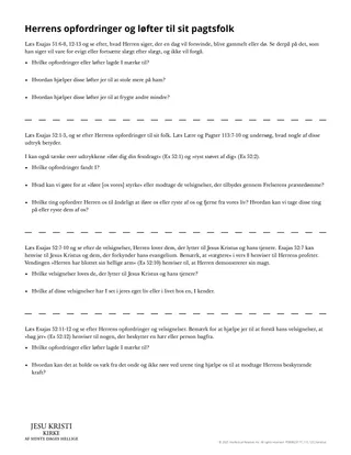 Du kan bede eleverne om at skrive følgende ufuldstændige udtalelse i deres studiebog: Når vi holder vore pagter med Herren, vil han …
