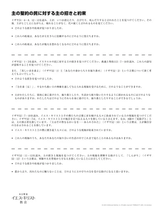 御自分の聖約の民に対する主の招き | 御自分の聖約の民に対する主の約束 |