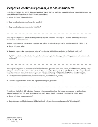 Apmąstykite, kokių iššūkių, rūpesčių ar klausimų jums šiuo metu gyvenime gali kilti. Studijuodami Izaijo 51–52 apmąstykite, kuo jums gali būti naudinga įsiklausyti į Gelbėtojo patarimus ir kvietimus.