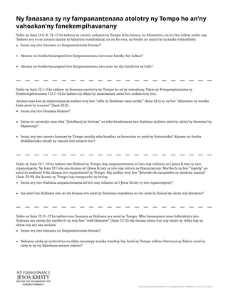 Ilay taratasy zaraina hoe “Ireo fanasana sy fampanantenana ataon’ny Tompo amin’ny vahoakan’ny fanekempihavanany” dia manampy ny mpianatra hamantatra sy hahatakatra ny fanasana sy fitahiana avy amin’ny Tompo ho antsika.