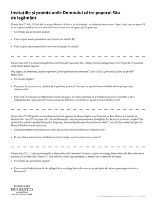Foaia de prezentare „Invitațiile și promisiunile Domnului către poporul Său de legământ” poate ajuta cursanții să identifice și să înțeleagă invitațiile și binecuvântările Domnului pentru noi.