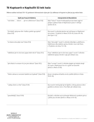 Disa nga fjalët dhe frazat tek Isaia 53 mund të jenë të vështira për nxënësit për t’u kuptuar. Nëse po, mund të doni të paraqitni fletushkën shoqëruese të titulluar “Të kuptuarit e kapitullit tek Isaia 53” ose ta siguroni për nxënësit që t’i referohen ndërsa studiojnë. Përndryshe, mund t’i ftoni nxënësit të përdorin një fjalor për të sqaruar fjalët ose frazat e panjohura.