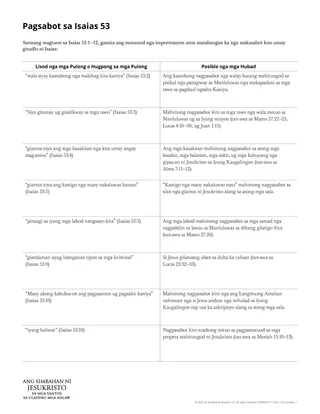 Ang mga estudyante makadawat og paghupay ug mapalawom ang ilang relasyon uban sa Langitnong Amahan ug ni Jesukristo pinaagi sa personal nga pagtuon sa Isaias 53. Ang mosunod nga kalihokan mao ang usa ka paagi nga mapatun-an nimo sa mga estudyante ang Isaias 53.