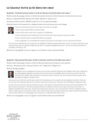 Pour les aider, distribuez à chacun d’eux un exemplaire du document intitulé « Le Sauveur écrira sa loi dans votre cœur ».