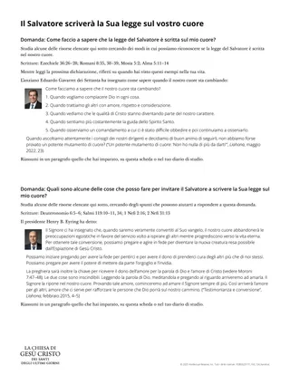 Per aiutare gli studenti a preparare una risposta, potresti consegnare a ognuno di loro una copia della scheda “Il Salvatore scriverà la Sua legge sul vostro cuore”.