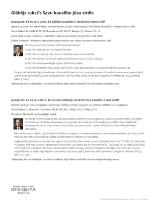 Kā jūs varat panākt, lai Jēzus Kristus evaņģēlijs ne tikai ietekmētu jūsu dzīvi, bet kļūtu par jūsu rīcības noteicošo faktoru, patiesi, par jūsu būtības kodolu? („When Thou Art Converted”, Liahona, 2004. g. maijs, 11. lpp.)